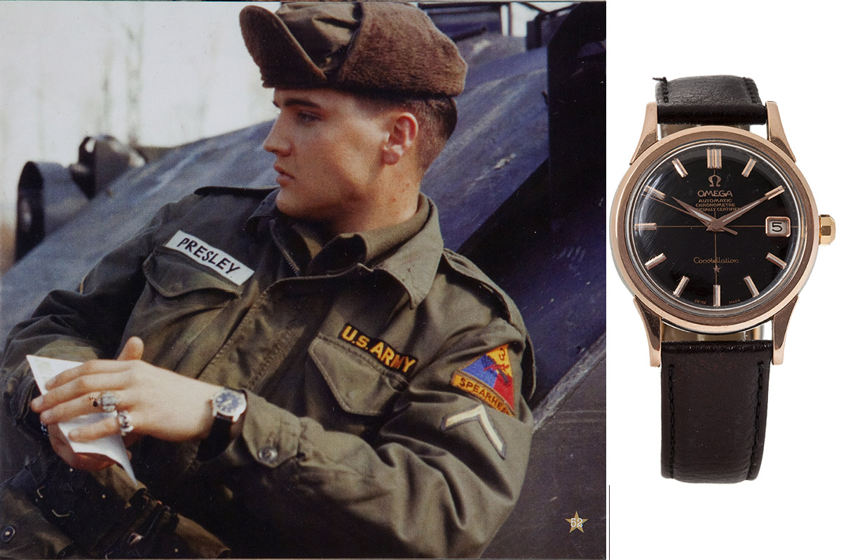 Del resto, non è l’unico orologio di Elvis a finire sotto il martelletto dei banditori. Sempre a proposito della Maison di Biel, è famoso anche un Omega Constellation con cassa in acciaio placcato oro rosa e certificato ufficiale di cronometro. Fu indossato da Elvis durante il servizio militare, periodo che poi ispirò il film Cafè Europa (G.I. Blues), del 1960, e regalato dal divo all’amico musicista Charlie Hodge. L’esemplare poi diventa un habitué delle case d’asta: messo in vendita nel 2011 da Heritage Auctions, raggiunse i 15.500 dollari; nel 2012 tornò in un incanto di Antiquorum, che lo aveva stimato fra i 10 e i 20mila dollari, ma spuntò i 52mila dollari; e nel 2014 sempre Antiquorum lo rivendette per 37.500 dollari. Quotazioni altalenanti ma di sicuro successo.