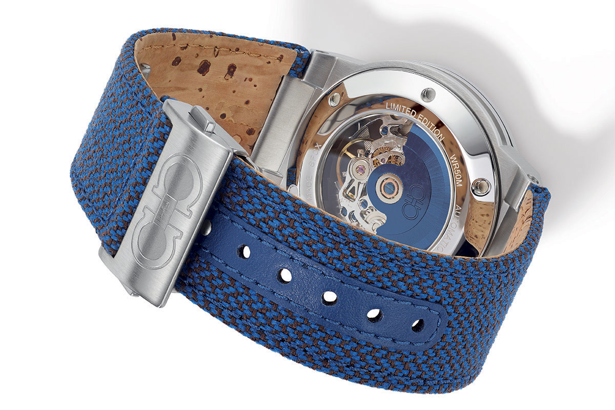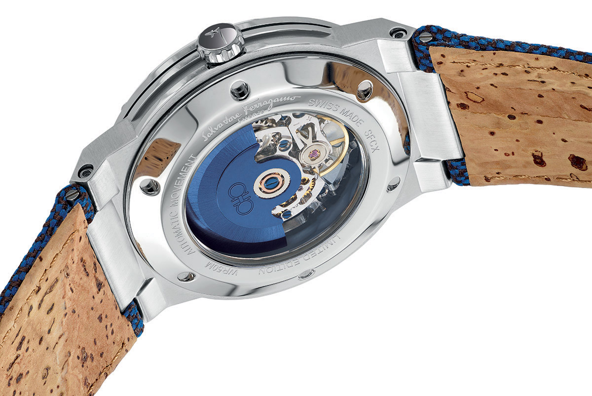 Dalle scarpe agli orologi. O meglio, dalle zeppe ai cinturini. Il sughero è riproposto dalla Casa che ha fatto la storia del made in Italy. In combinazione con Pet riciclato, trasforma uno dei best-seller dell’orologeria a marchio Salvatore Ferragamo – l’F-80 Skeleton – in un oggetto a basso impatto ambientale.