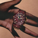 Naturalmente la riedizione in chiave sostenibile dell’F-80 Skeleton coinvolge anche la confezione. La scatola è in cartone certificato Fsc. L’astuccio protettivo in legno e metallo – proposto in due tonalità abbinate a quelle dell’orologio – è rivestito internamente da canapa ed esternamente in tessuto composto da fibra di Pet riciclato post-consumer. Il cuscino porta-orologio è stato infine realizzato materiale bioplastico ricavato al 100% dalla canna da zucchero.