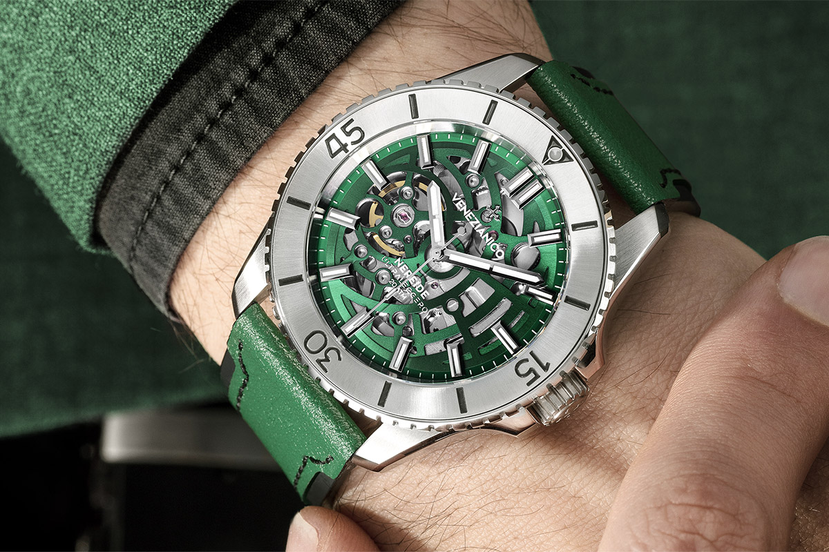 Design pulito e colori armoniosi sono alla base delle collezioni del marchio veneto, strutturate su due modelli principali: Redentore, più classico; e Nereide, un subacqueo impermeabile fino a 20 atm, oggetto di sempre nuove declinazioni. Risale alla fine dello scorso anno, per esempio, il deposito di brevetto per la costruzione del quadrante scheletrato multilivello del Nereide Ultraleggero, che consente non solo uno spessore minore della cassa, ma anche maggior leggerezza e maggior resistenza alle sollecitazioni esterne. Un segno caratteristico è il fondello, inciso con una reinterpretazione in chiave moderna dell’Uomo Vitruviano. Da citare anche le ultime uscite, Nereide Tungsteno e Nereide Ceramica.