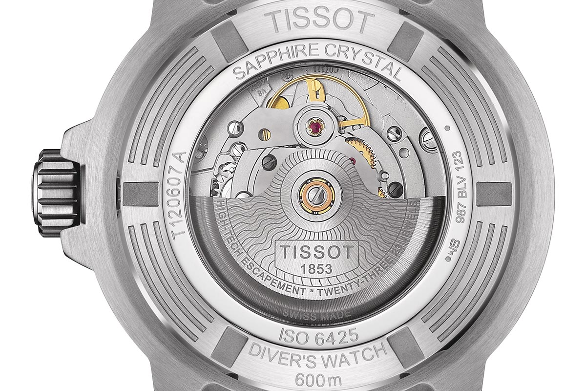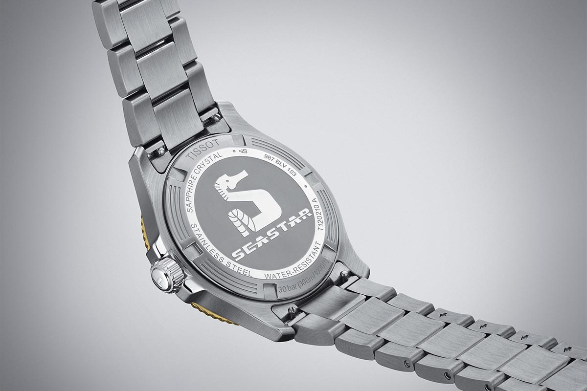 Il fondello, “chiuso” e avvitato, è decorato con la riproduzione di un cavalluccio marino stilizzato, simbolo degli orologi subacquei di Tissot, e riporta i dati essenziali dell’orologio. Il bracciale a tre file in acciaio è assicurato con una doppia fibbia di sicurezza; e si può facilmente sostituire con un cinturino in silicone, declinato in diverse cromie “estive”: bianco, arancione, azzurro e nero. Riguardo al prezzo, copre un range che va da 415 a 445 euro. E non smentisce quindi l’impostazione “democratica” propria del Marchio.