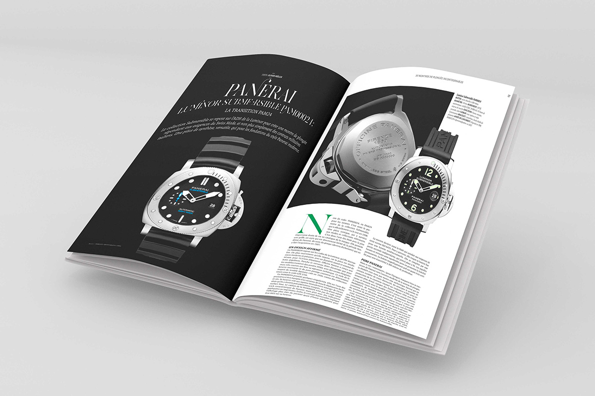 Le 200 pagine e le oltre 500 illustrazioni del libro conducono il lettore alla scoperta dei molteplici argomenti legati all’immersione. Dagli aspetti tecnici degli orologi subacquei all’esplosione di questi esemplari sul mercato vintage, fino all’usato certificato. Un capitolo a parte è dedicato all’iconico Submariner e include una prospettiva su ciò che è ancora possibile sviluppare nei prossimi 10 anni in questo ricco segmento dell’industria orologiera. Una sezione è inoltre dedicata ai Fifty Fathoms di Blancpain e ai Submersible di Panerai, esemplari che hanno definito e ridefinito il concetto di diver’s watch.