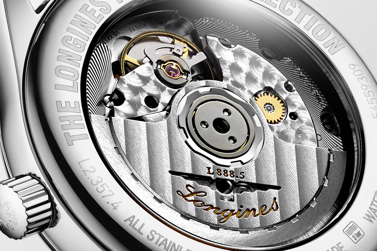 Il “cuore pulsante” della Longines Master Collection 34 mm è infatti un movimento rigorosamente meccanico: il Calibro L888.5. A onor di cronaca, devo sottolineare che il Calibro L888.5 è stato progettato “in casa” sulla base dell’Eta 2892/A2, uno dei movimenti automatici “solo tempo” più celebri e diffusi, apprezzato per l’affidabilità, la resistenza e anche lo spessore contenuto (che non guasta). Ed è realizzato in esclusiva dalla Eta – che, come la stessa Longines, fa parte di Swatch Group. Ancora una volta, dunque, si tratta di uno di quei risultati positivi prodotti dalla sinergia fra le marche del gruppo, di cui Il Giornale degli Orologi si è già occupato più volte.