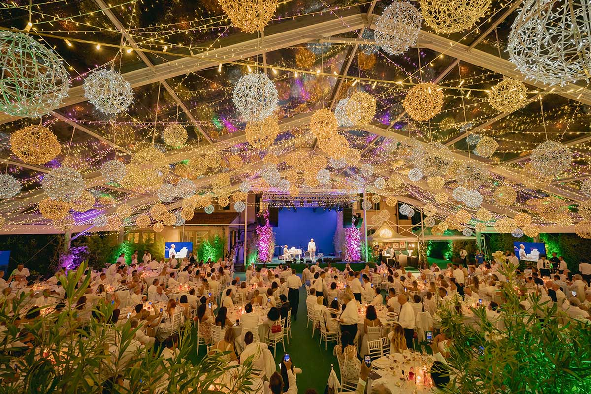 La serata, splendidamente mondana, prevedeva un estivo e sempre elegante dress code: “tutto bianco” (con qualche tocco floreale, non solo per le signore). Ma il momento davvero speciale è stata la cena di gala, preparata da Euro-Toques, associazione europea di cuochi d’alto livello, che ha visto tra i suoi promotori Paul Bocuse e Gualtiero Marchesi, per l’occasione capitanati da Enrico Derflinger. Una brigata di cucina composta da una decina di professionisti provenienti da tutta Italia, che ha davvero deliziato il palato degli ospiti.