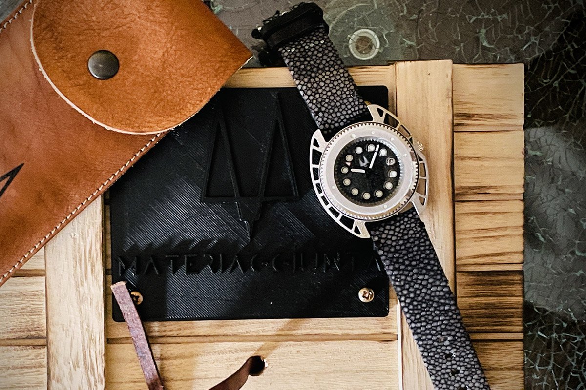 Consulente di progettazione meccanica con laurea in design conseguita allo IED di Torino, Riccardo Tiboni ha lanciato nel 2021 il suo primo esemplare: Materiaggiunta Octopus. Un orologio interamente autoprodotto, dai primi sketch sulla carta alla progettazione Cad. Il nome Materiaggiunta deriva dal fatto che i componenti dell’habillage (cassa, fondello, lunetta e quadrante) sono realizzati in acciaio 316L sinterizzato, cioè stampato al laser in 3D, poi puliti e rifiniti a mano. Un bell’esempio di quanto possa essere avanzato, nel senso di evoluto, il design dei microbrand.
