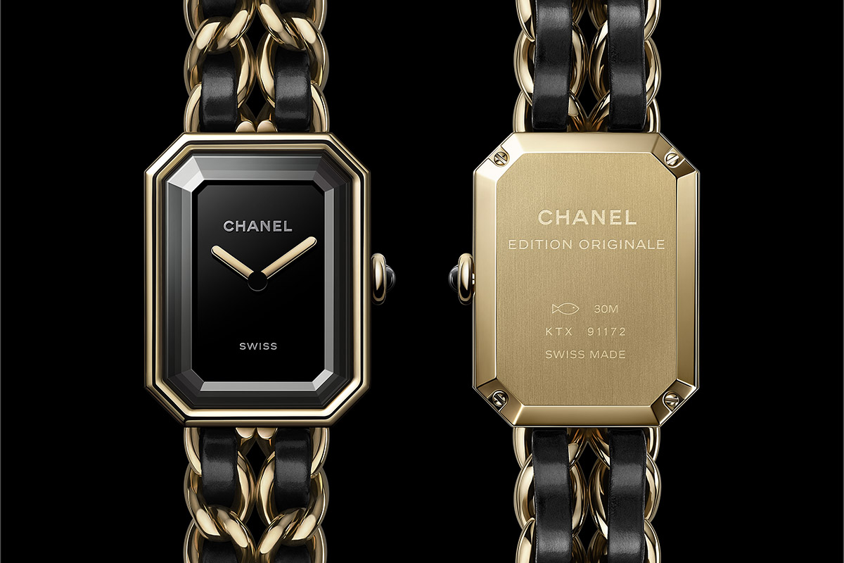 Fino a quest’ultima versione, che è un ritorno alle origini, alla semplicità del design e all’estetica d’antan. Il Première Original Edition di oggi infatti riprende l’essenzialità e il rigore del primo esemplare. Stessa cassa ottagonale in acciaio color oro, stesse dimensioni lady size, stesso quadrante laccato nero protetto da un vetro zaffiro sagomato. E come allora, l’orologio è animato da un movimento al quarzo Swiss made. Perfino il packaging è identico al passato: una chic-chissima scatola bianca profilata di nero, anch’essa ispirata a quella dello Chanel N° 5.