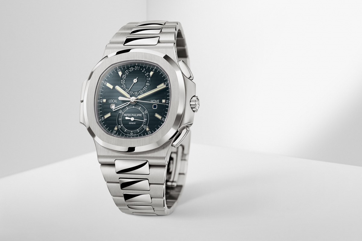 L’amata collezione si arricchisce quindi di ulteriori esemplari con funzioni aggiuntive. Il primo è il Nautilus Travel Time Chronograph Ref. 5990, uno dei pochi complicati della Maison realizzati in acciaio. Animato dal calibro CH 28-520 C FUS a carica automatica, concentra ben tre complicazioni: cronografo flyback, doppio fuso orario (la nota funzione Travel Time della Manifattura, appunto) e il datario a lancetta. Anche in questo caso il quadrante è blu sfumato nero. Costa 69.159 euro.