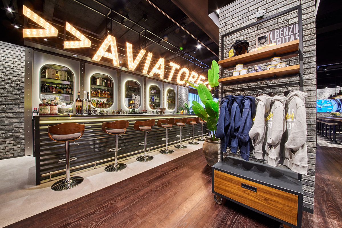 Ecco allora, al di là dell’ampiezza, la ragione del particolare allestimento. «L’ispirazione si riferisce al loft e all’industrial design: un format mondiale che è il fil rouge voluto dal Ceo Georges Kern per tutti i punti vendita Breitling nel mondo», racconta ancora Toffanin. «Ecco spiegata anche l’esigenza dell’ampiezza: lo spazio deve contenere scaffalature metalliche, divani in pelle, tappeti, veneziane, pannelli e insegne luminose, oltre ad accessori e capi d’abbigliamento che a loro volta fanno da contorno agli orologi. Un grande investimento di cui avremo contezza a un anno dall’apertura, ma che al momento vede un afflusso di pubblico considerevole. Con interessanti risposte dagli italiani e con gli stranieri che stanno tornando – anche se non tutti, per la difficile contingenza internazionale».