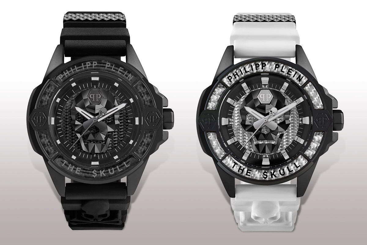 The Skull Carbon è un esemplare che supera i confini e rompe le regole, coerente con l’anima rock e ribelle del marchio. La cassa dal formato XL è in acciaio naturale o Ip black. E racchiude il quadrante in fibra di carbonio, in cui si staglia l’iconico $kull sfaccettato 3D con il logo esagonale Philipp Plein sulla fronte. In quattro colori strong: bianco, giallo, blu e nero.
