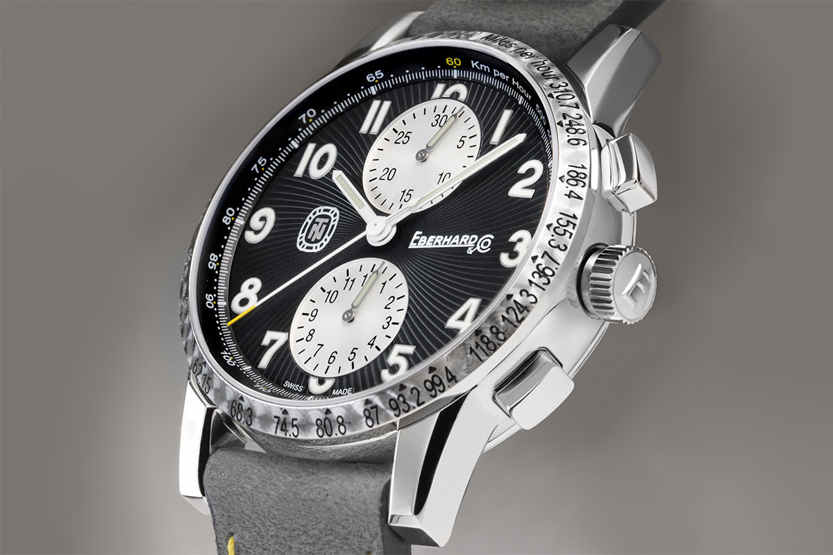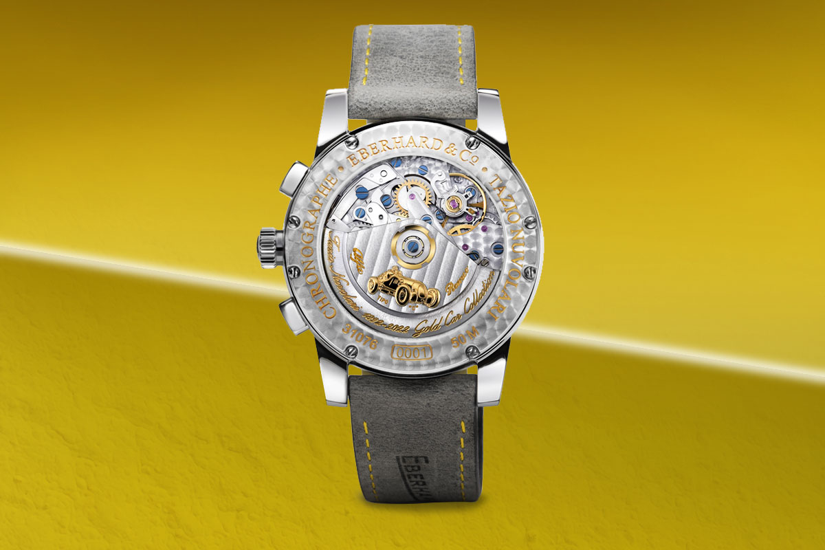 Il cronografo Tazio Nuvolari nacque nel 1992 da un’idea di Palmiro Monti, allora titolare di Eberhard & Co. Grande appassionato di automobilismo, Monti volle tributare un omaggio al pilota e condusse personalmente le trattative con l’Automobile Club di Mantova, che deteneva i diritti sul nome. L’accordo prevedeva che il compenso versato da Eberhard avrebbe contribuito a finanziare il museo dedicato a Nuvolari. Monti si occupò anche dello stile del cronografo, immaginandone e disegnandone le caratteristiche estetiche dopo aver condotto lunghe ricerche iconografiche.