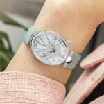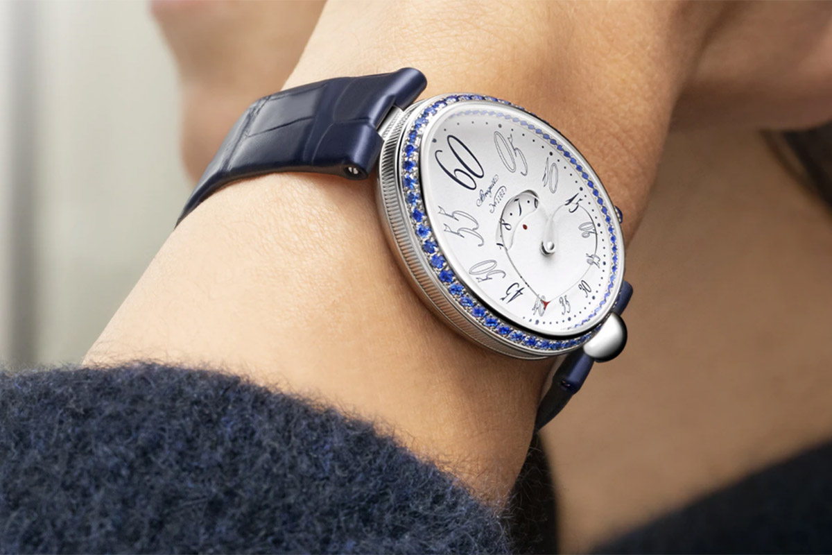 La variante in tiratura limitata invece sceglie la monocromia blu, appena profilata di bianco. Spettacolare è la madreperla del quadrante, che ricorda un cielo notturno trapunto di nubi. La lunetta, il réhaut e la caratteristica ansa a boule sono interamente tempestati di diamanti taglio brillante, sulla corona spicca un altro diamante briolette. Il totale è di 2.25 carati, comprese le pietre presenti sulla fibbia déployante. A proposito, entrambe le referenze si indossano al polso con un identico cinturino in pelle di alligatore, sempre nel colore della notte. Cambiano (anche se di poco) i prezzi. Il Reine de Naples 9838 costa 51.400 euro, il 9835 57mila. Del resto la poesia è preziosa già di suo…