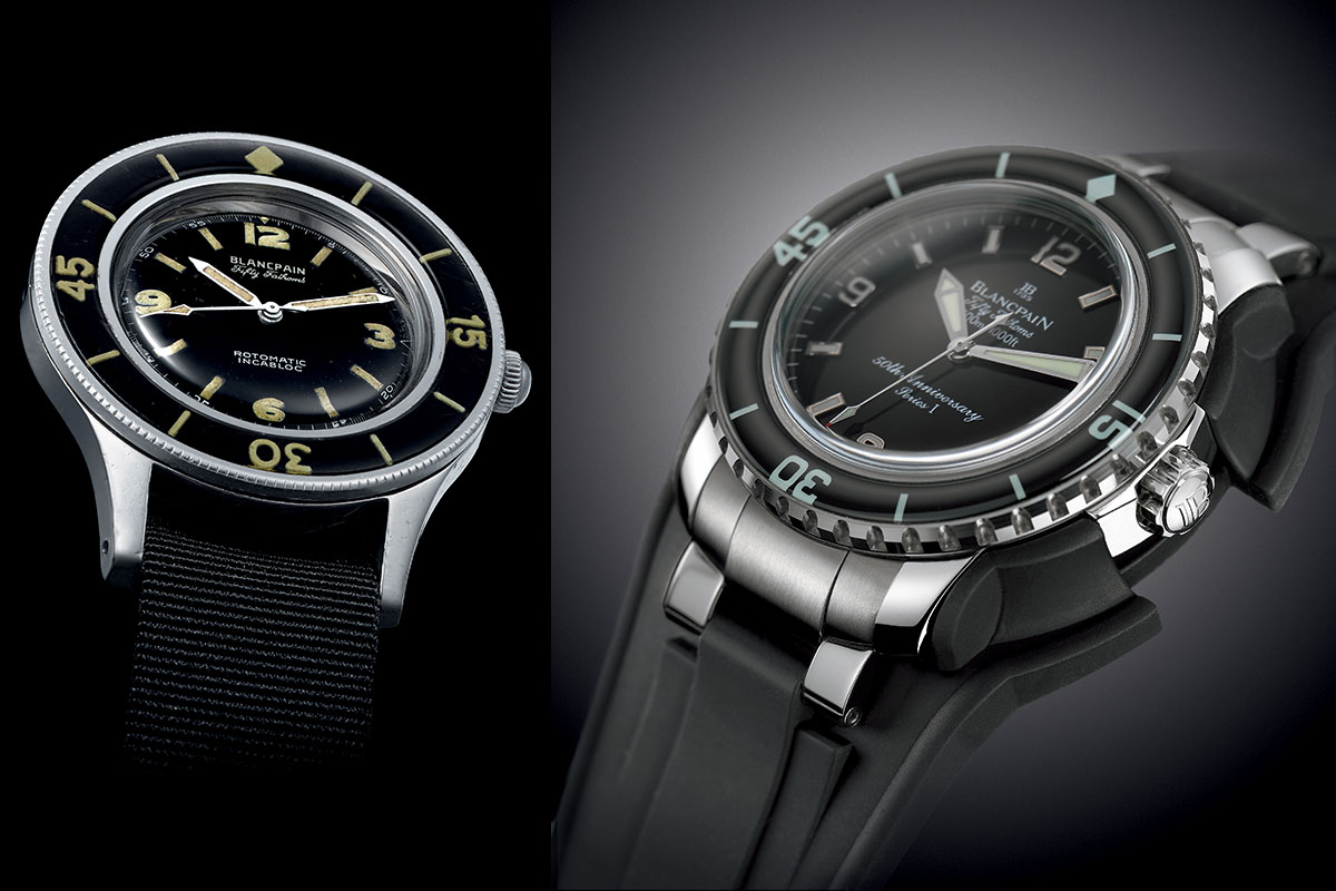 Fino al 2002: quando Marc Hayek prese in mano le redini di Blancpain, scoprì nei caveau della Manifattura gli esemplari d’antan e se ne innamorò. Incaricò quindi i tecnici della Maison di sviluppare un moderno Fifty Fathoms. Nel 2003, per i 50 anni dell’esemplare, Blancpain presentò quindi un nuovo modello che coniugava l’aspetto vintage con l’impermeabilità della versione del ’97, e in più aggiunse una lunetta con inserto in vetro zaffiro curvo e antigraffio. Elemento, quest’ultimo, che la dice lunga sulla ricerca di nuovi materiali e di innovazioni portata avanti fin dall’epoca dal Gruppo Swatch. I 150 esemplari dell’edizione limitata andarono subito esauriti: da qui la scelta di riprenderne la produzione.