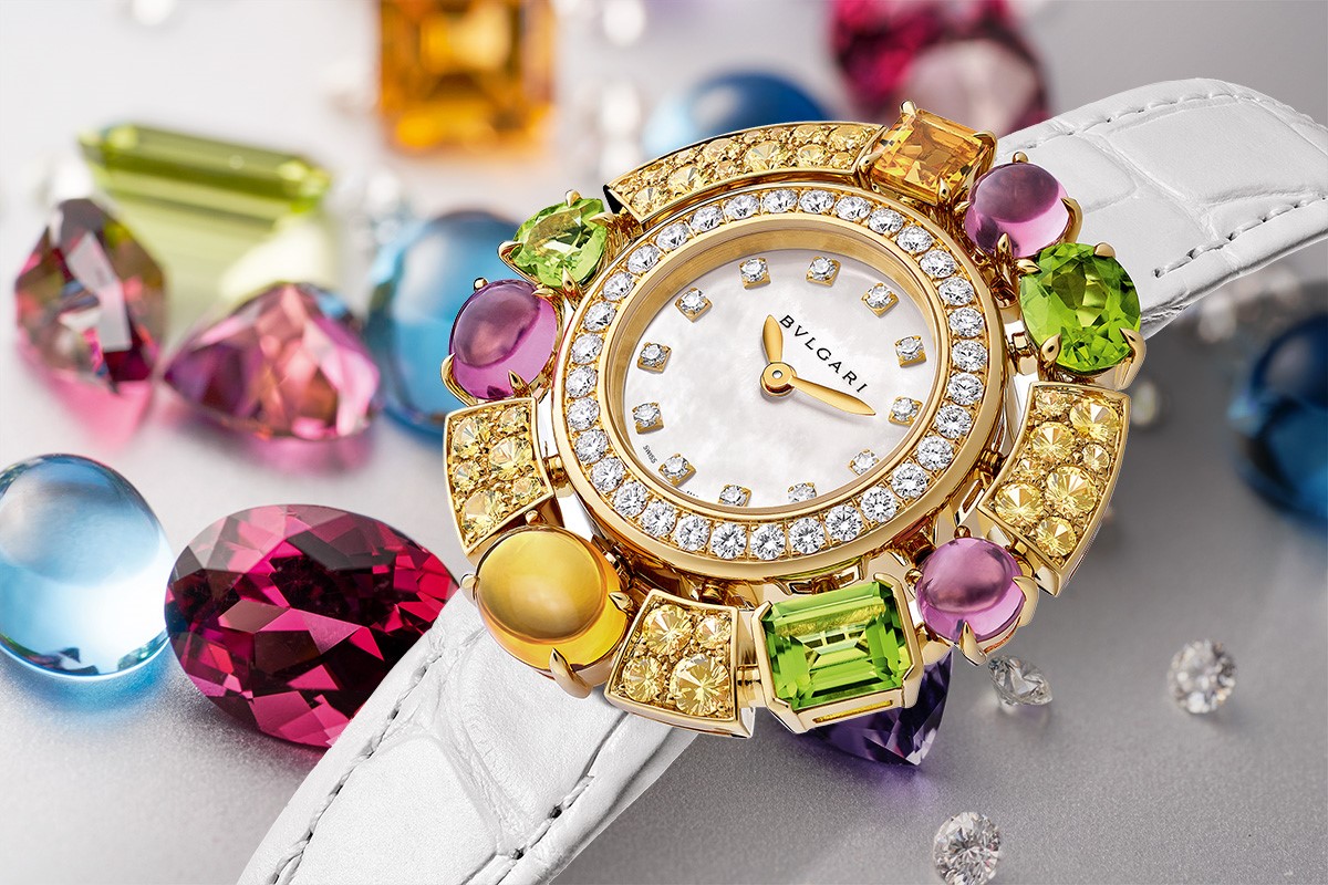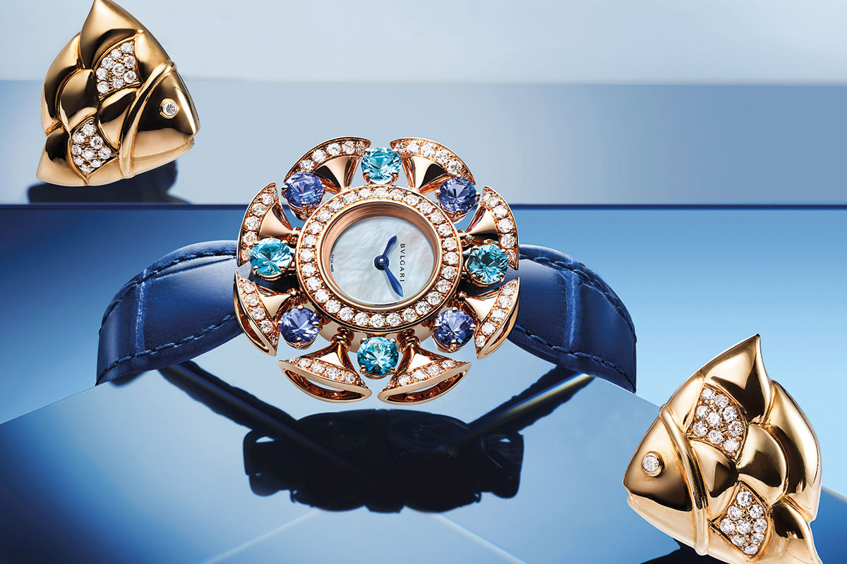 Per seguire rigorosamente un ordine alfabetico, partiamo da Bulgari. Che a Singapore si concentra sul segmento femminile ed espone una serie di esemplari gioiello, più o meno preziosi. Dove, al centro della scena, si trovano le pietre preziose e le gemme di colore. A cominciare dai Divas’ Dream. Un design d’impronta floreale, i petali mobili ispirati alle foglie di ginko biloba in oro e diamanti, inframmezzati da topazi e tanzaniti, ametiste e tormaline, oppure rubini. Anche in versione mosaico, con il quadrante interamente tempestato di “ventagli” in diamanti e zaffiri, rosa o blu. E sempre gli zaffiri sono protagonisti di Allegra, dalla ricca palette cromatica dominata dai toni del giallo o del rosa.