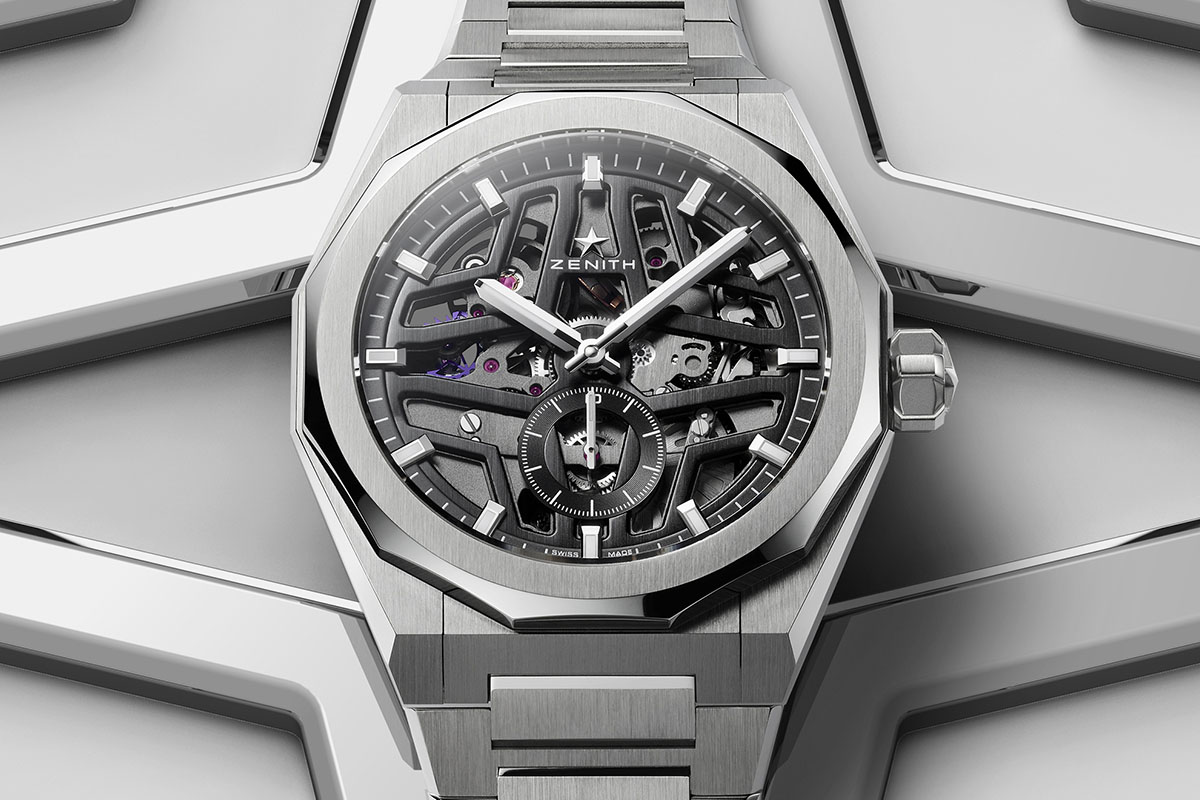 Per concludere con Zenith, che ha lanciato il Defy Sky Skeleton. Un solotempo con quadrante scheletrato, che compone una stella a 4 punte ispirata al logo “double zed” anni ’60. Equipaggiato da un movimento El Primero di ultima generazione, il calibro 3620 SK – anch’esso di costruzione squelette, con scappamento e àncora in silicio -, è in grado di misurare il 10° di secondo con la piccola lancetta nel contatore al 6. Senza dimenticare comunque il Defy Skyline 36 mm. Inedita versione no-gender della collezione, con dimensioni ridotte e quadrante in tre cromie: blu metallizzato, verde pastello o rosa, anche con lunetta incastonata. E cinturino in colori coordinati, intercambiabile al bracciale in acciaio.