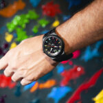 Riguardo al carbonio, è un elemento d’avanguardia entrato prepotentemente anche nella produzione orologiera. Nella cassa tonda dei Turbine Carbon (44 mm di diametro, impermeabilità fino a 10 atm), le fibre di carbonio unite al policarbonato conferiscono doti di leggerezza e durezza, resistenza agli urti e ai graffi, capacità di isolamento termico, insensibilità agli sbalzi di temperatura e agli agenti chimici. Caratteristiche che garantiscono una lunga durata nel tempo. La lunetta piatta e il fondello sono invece in acciaio trattato Pvd nero opaco. La carrure presenta la tradizionale decorazione a scanalature verticali con la corona prominente, facile da maneggiare, introdotta con la linea Turbine Evo nel 2019. Il prezzo al pubblico è di 4.750 euro.