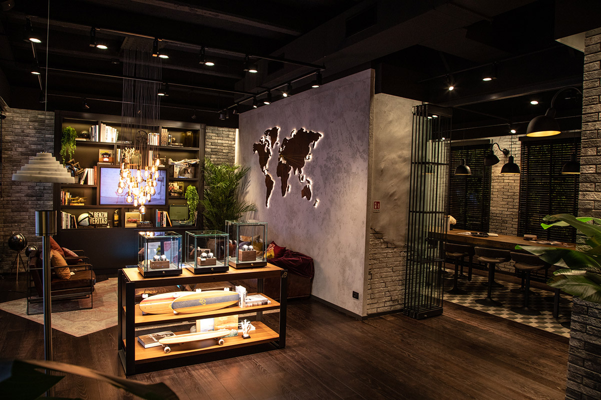 Intanto, in corso Matteotti 3, il flagship store di Breitling diventa una wunderkammer del design, con l’esposizione Design your Time che riunisce pezzi di home décor firmati da marchi noti e innovativi. L’atmosfera rimane quella tipica del marchio, informale, inclusiva e sostenibile. Ma nel loft industriale (il più grande a livello europeo), tra il bancone del Watch Bar e gli scaffali espositori, si ritrovano insolite presenze. Ecco quindi i cuscini realizzati da Atelier Des Réfusés in collaborazione con Stratis, prodotti con pregiati tessuti di recupero e decorati con la stampa 3D. Gli oggetti d’uso quotidiano (vasi, taglieri, lampade) trasfigurati da Bettisatti in piccole architetture domestiche di marmo e legno. E ancora gli arredi immersivi e modernissimi di Luxio, che qui presenta due librerie con schermi Led integrati che diventano elementi strutturali a sostegno delle mensole.