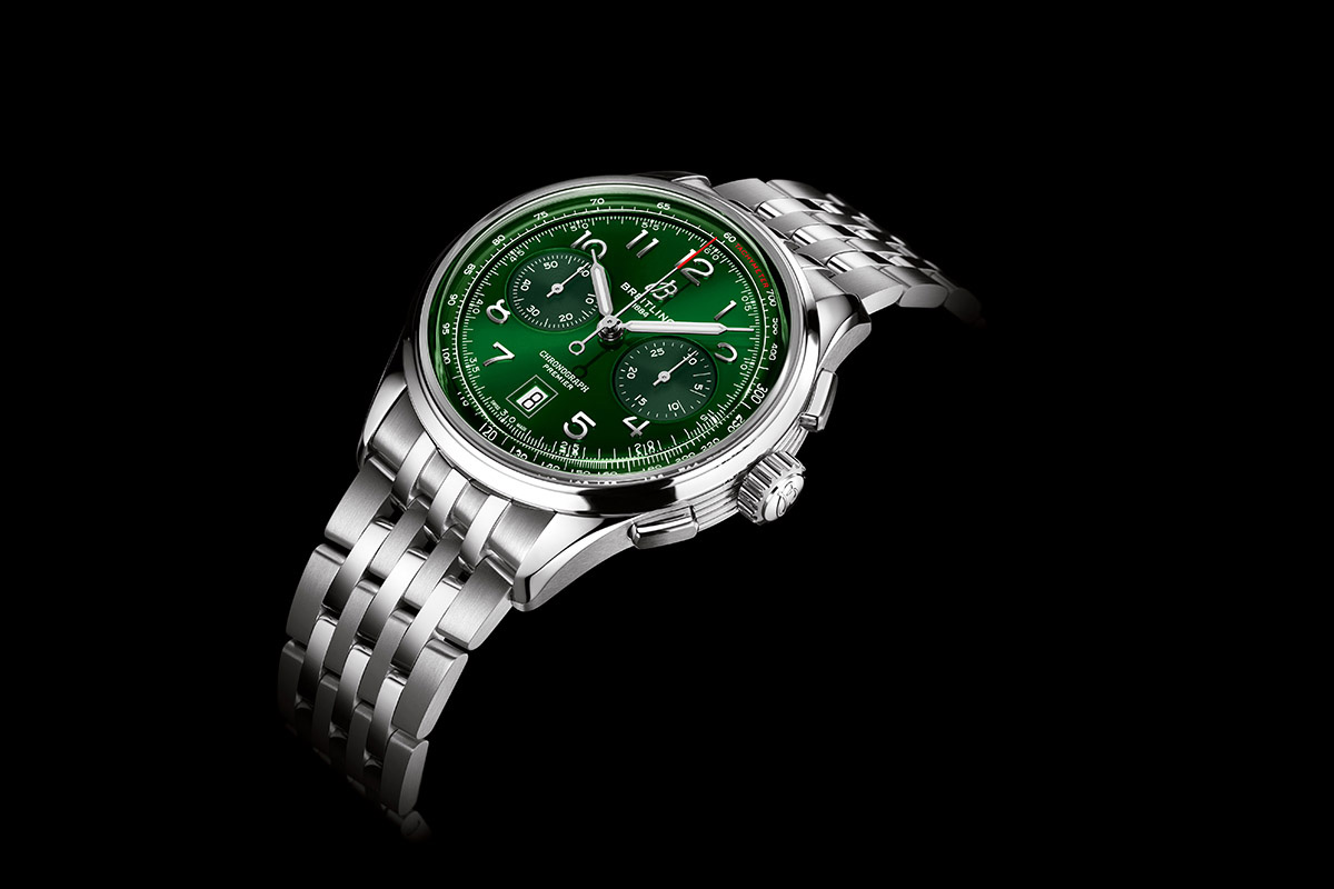 Per entrare nel dettaglio, il nuovo Premier B01 Chronograph 42 prende spunto dalla referenza 777, un modello con la cassa in oro rosa prodotto dal Dopoguerra per almeno un intero decennio, declinato in molteplici varianti differenti per dimensioni e allestimento. Anche la collezione di oggi è articolata in molteplici versioni: le 5 referenze in acciaio si distinguono per il colore del quadrante: nero, blu, verde, crema o salmone. Ciascuna è disponibile con cinturino in pelle di alligatore o con bracciale in acciaio a 7 file, dall’aspetto vintage. Esiste anche con la cassa in oro rosso e il quadrante crema, sempre con l’opzione cinturino o bracciale.