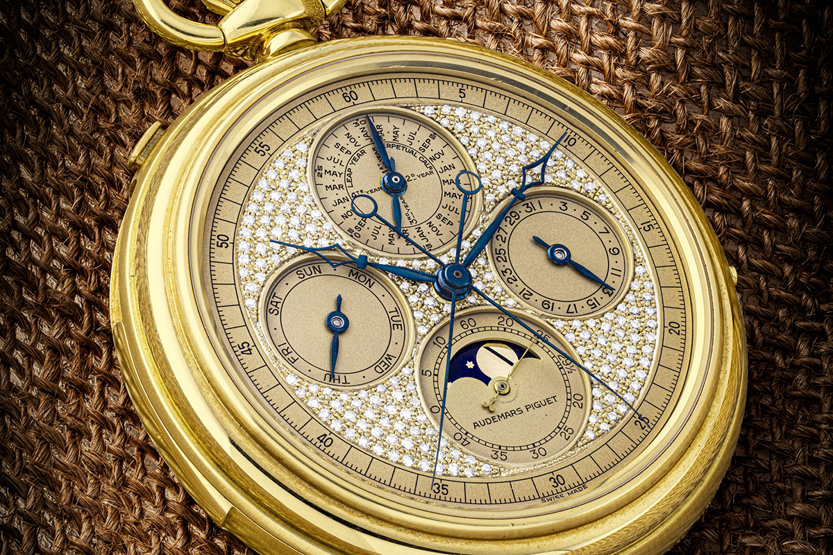 Si tratta di un Audemars Piguet Ref. 25630 Grand Complication, con quadrante con pavé di diamanti, e il più antico “miniature watch” conociuto di Patek Philippe con una complicazione orologiera della leggendaria Maison di Ginevra, forse la più piccola mai realizzata.