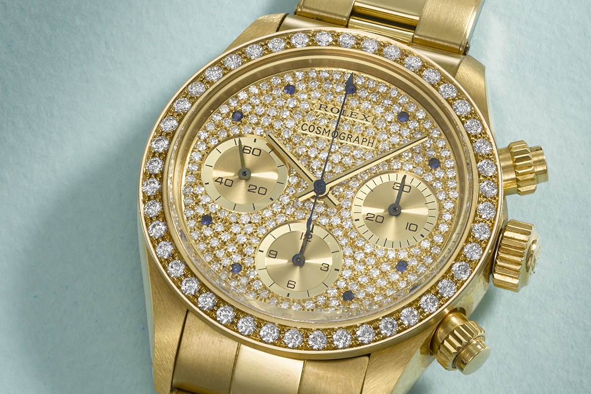 Tra gli highlight, i tre orologi che si sono spartiti il podio: nemmeno a dirlo, Rolex e Patek Philippe. Il lotto più pagato è stato il 102, un Rolex Daytona Ref. 6270 “The End Game” del 1988, venduto per 3 milioni e 690mila franchi (circa 3 milioni e 800mila euro), un esemplare in oro giallo con quadrante in pavé di diamanti, indici con zaffiri e lunetta con diamanti baguette. Segue il lotto 23, un Patek Philippe Ref. 2499 calendario perpetuo seconda serie in oro rosa del 1950, battuto per 3 milioni e 200mila franchi (circa 3 milioni e 300mila euro). Terzo posto per la stessa referenza di Patek, ma in oro giallo e datata 1951: 2 milioni e 360mila franchi (circa 2 milioni e 400mila euro).
