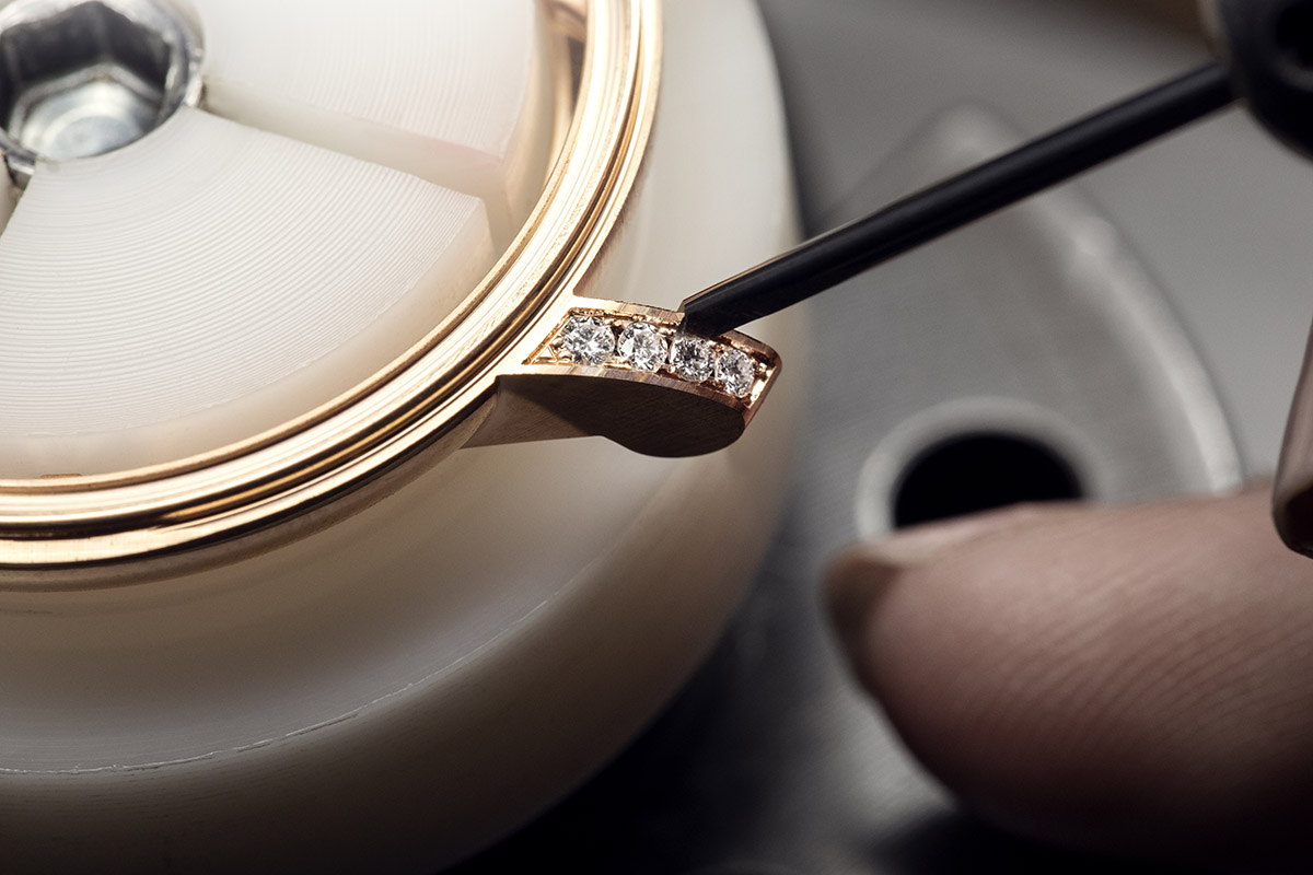 Infine un accenno anche ai cinturini in pelle di alligatore che, cromaticamente, si abbinano agli indici in cifre romane e tengono conto del metallo della cassa. Riguardo alle versioni con le fasi di luna, i colori sono il blu notte e il turchese sia per le casse in oro bianco sia per quelle in oro rosso, con l’aggiunta di un verde foresta per quest’ultimo. Per gli automatici solo tempo il colore lilla e quello turchese si abbinano alle casse in oro bianco; il blu, il verde pavone e il verde foresta si uniscono all’oro rosso.