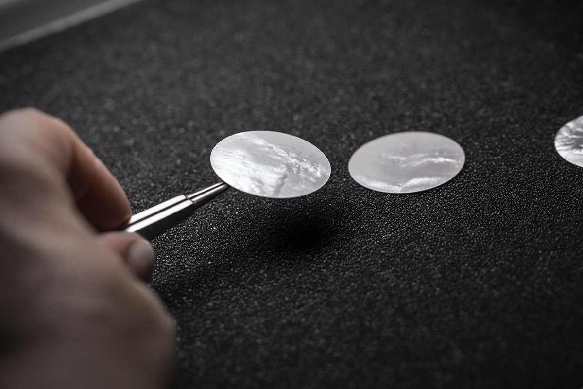 Da ammirare, nell’indicazione delle fasi lunari a ore 6, il disegno della Luna che sembra nato dalla fantasia di un bambino: sul cielo blu con stelle dorate, la luna d’oro ha un viso tondo, occhi chiusi e lunghissime ciglia. Una rappresentazione tutta femminile del nostro satellite in cui appare perfino il vezzo di un neo sulle labbra, a forma di stellina. Un dettaglio simile ai nevi finti che dame e cicisbei si dipingevano sul volto incipriato, com’era di moda nel XVIII secolo, a evocare forse le origini settecentesche della Manifattura.