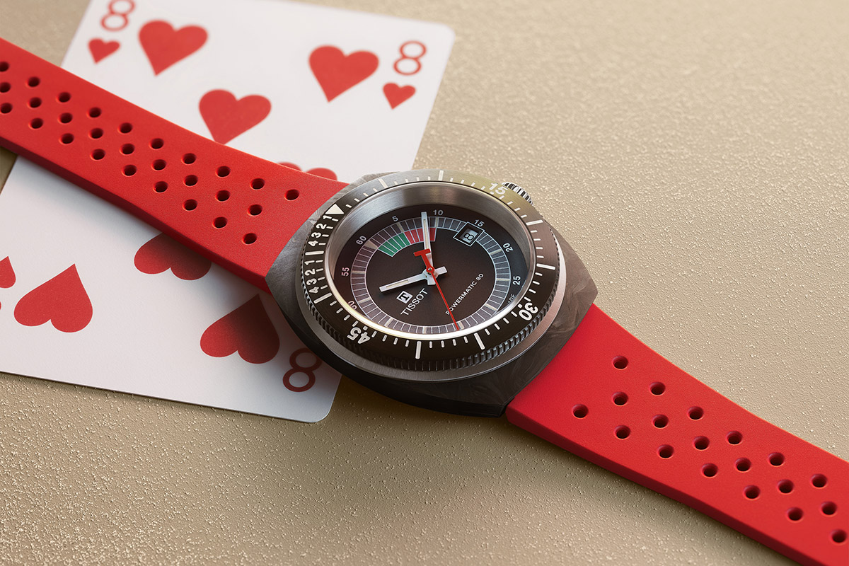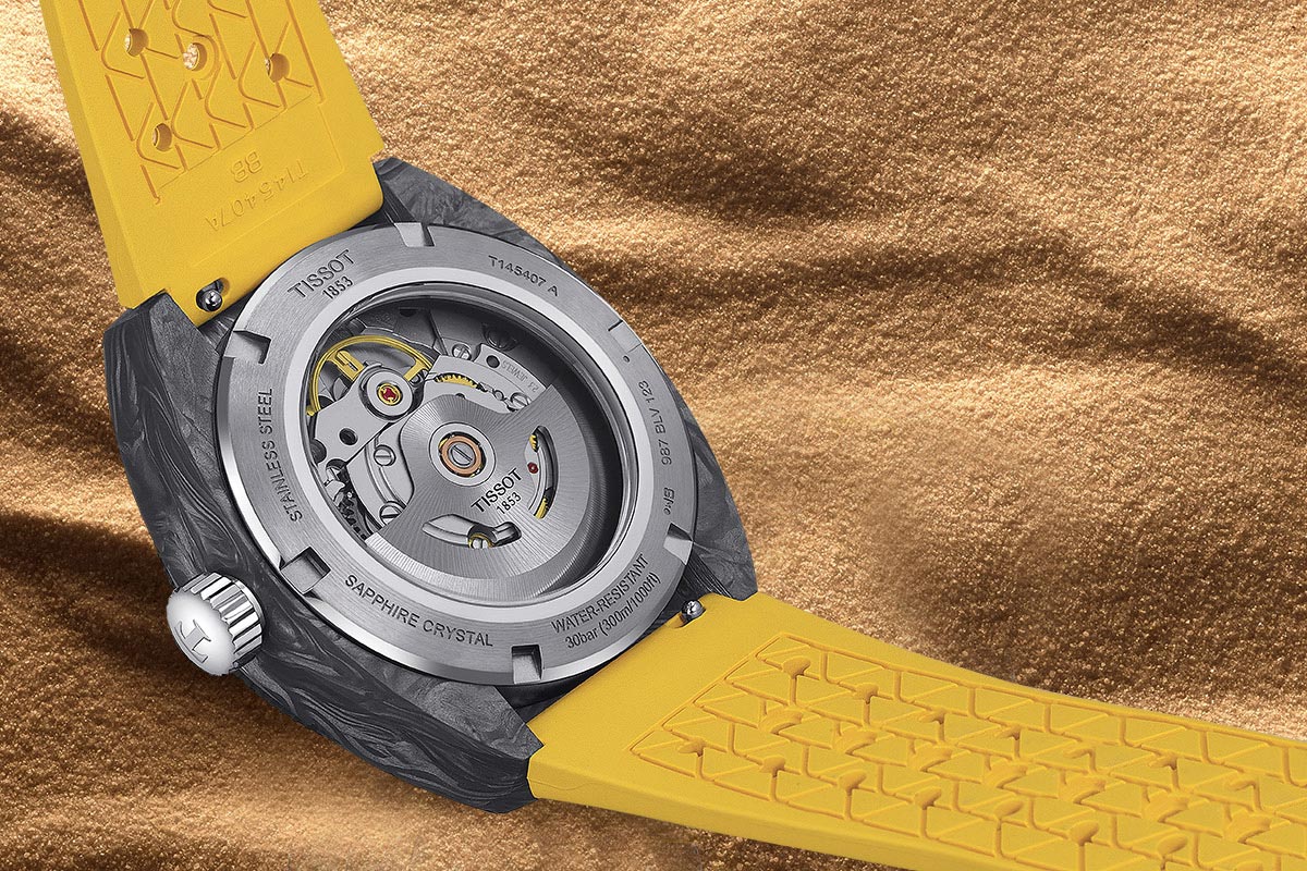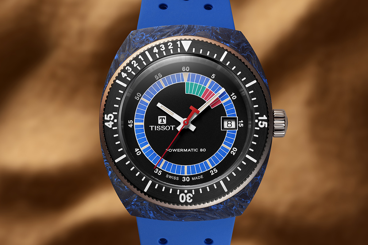 Partiamo da quest’ultimo, che non è più la fibra di vetro ma il carbonio forgiato che costituisce la cassa del nuovo Tissot Sideral. Passano i decenni, ma non passa la tensione alla ricerca né cambiano le dinamiche industriali. Così come la fibra di vetro, anche quella di carbonio è passata dall’aerospazio all’automotive alla nautica, per arrivare all’orologeria. Anche sotto forma di carbonio forgiato che, pur non essendo una novità nel mondo delle lancette, non è così comune.