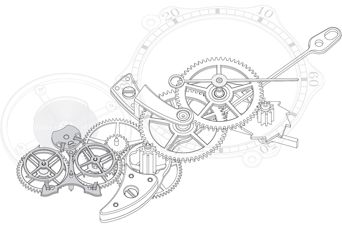 Altro nemico giurato della cronometria è l’attrito, che deve essere ridotto al minimo per evitare di disperdere energie preziose, soprattutto quando la forza impressa dalla molla motrice si indebolisce avvicinandosi al termine della riserva di marcia. Per ovviare a questo problema, Chronometre Optimum è dotato di due bariletti montati in parallelo e due molle di carica, soluzione che rende minima l’azione della forza laterale sulla ruota intermedia e garantisce, in ultima istanza, una maggior stabilità al movimento dei ruotismi.