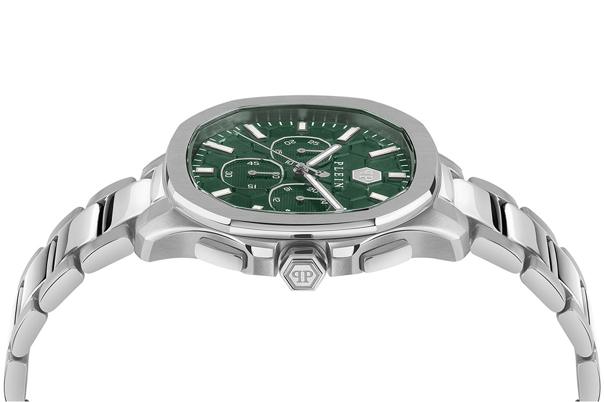 In particolare, la dotazione tecnologica dello $pectre Chrono si adatta a ogni tipo di attività quotidiana, enfatizzata dal grintoso stile subito riconoscibile. Tre le nuove referenze che vanno ad arricchire la collezione già in catalogo: in acciaio, anche Ip oro rosa oppure nero, con quadrante verde, brown oppure nero, e con bracciale in metallo o cinturino in caucciù. Da segnalare soprattutto la versione che strizza l’occhio all’esuberanza estiva con una sgargiante lunetta tempestata di cristalli multicolor su un insieme total black. Una netta evoluzione rispetto ai più noti orologi scheletrati connotati dal tipico teschio Philippe Plein, diventato una sorta di marchio di fabbrica.