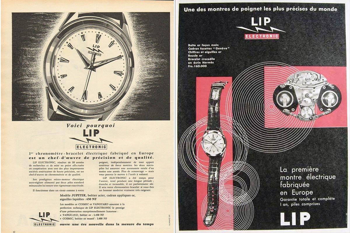 Ormai però si era in dirittura di arrivo anche per i francesi e il 7 dicembre 1958 finalmente presentarono il Lip “Electronic”, così come qualche giorno dopo fece Elgin negli Usa. Un esemplare andò in dono al Generale De Gaulle e un altro al Presidente americano Dwight Eisenhower. I primi esemplari furono in oro e assemblati a mano. Alla Lip strinsero intese con Porta, Lanco e Benrus per la commercializzazione con i loro marchi. Studiarono una versione con datario, che però non vide mai la luce. Nel 1959 un esemplare ricevette il certificato di cronometro dall’osservatorio di Besançon, diventando il primo orologio elettrico nella storia.