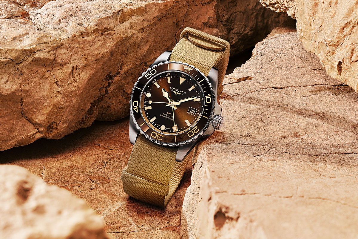A proposito di bracciale, per le nuove referenze Longines ha scelto la doppia opzione. Tutti gli orologi sono disponibili con un bracciale in acciaio inossidabile con maglie a forma di H interamente ridisegnate e chiusura con microregolazione, una novità per Longines. Soluzione ideale per adattare l’orologio, eventualmente, al di sopra di una muta da sub o nel caso il polso si dilati per il caldo.