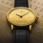 Cassa (44 mm) in acciaio, impermeabile fino a 10 bar. Movimento meccanico a carica automatica, calibro H-21 con indicazione di ore e minuti e complicazione cronografica. Quadrante opaco con indici arabi applicati rivestiti di Super-LumiNova, vetro zaffiro con trattamento antiriflesso, cinturino militare in pelle tipo Bund. 1.945 euro.