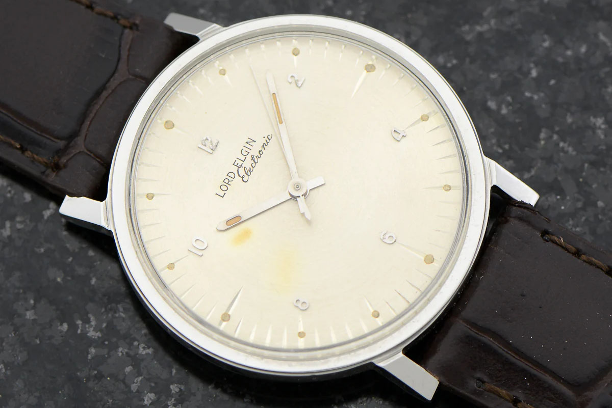 La produzione di orologi elettromeccanici influì notevolmente sulla rovina della Marca. A partire dagli anni Trenta, Elgin aveva dato il via allo sviluppo di un calibro di questo tipo, ma le ricerche si erano arenate durante la guerra. Poi, nel ‘46, riprese gli studi, che in seguito procedettero in modo spedito anche grazie alla collaborazione con Lip, iniziata nel ‘49.