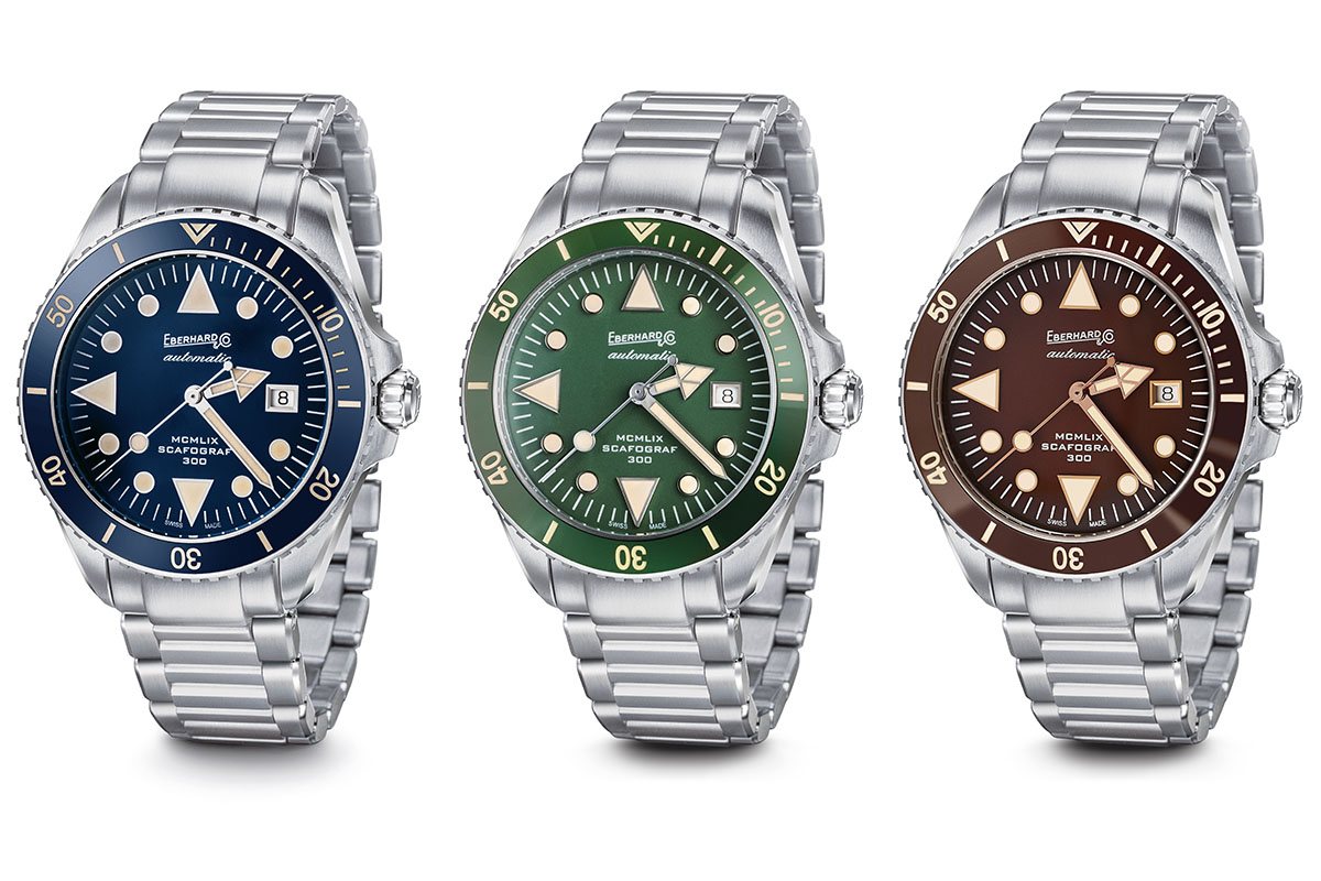 Protagonista dello stand Eberhard & Co., sia sui pannelli esterni che nelle vetrine interne, è proprio lo Scafograf 300 MCMLIX. Solo in parte eclissato dall’altra novità, quel Chrono 4 Pards tanto amato dai fan di Tex Willer, il nuovo subacqueo è un esemplare dalla monocromia marrone e dallo stile vintage. «Questo orologio va a completare la trilogia uscita negli anni scorsi», spiega ancora Mario Peserico, «con i modelli blu e verde». I precedenti meritano un cenno. Uscito nel 2016 come evoluzione contemporanea della storica collezione, lo Scafograf 300 segna il nuovo standard della Casa nel segmento degli orologi subacquei professionali. E conquista il premio della categoria Sport al GPHG di quell’anno. Impermeabilità fino a 30 atmosfere, lunetta girevole unidirezionale con inserto in ceramica e valvola di decompressione sono alcune delle caratteristiche che ne definiscono le prestazioni.