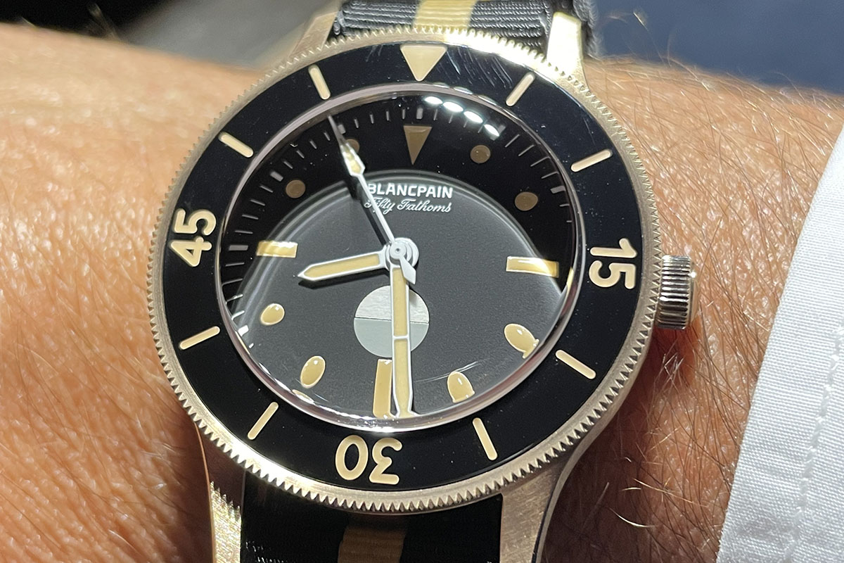 Ebbene, io non sono il mago Otelma (grazie al cielo) e nemmeno ho un’intelligenza superiore alla norma (peccato), ma l’idea che sarebbe stato qualcosa di filologicamente più vicino alla storia dell’orologio mi è passata per la testa. Dopo che l’Act 1 era stato un omaggio al passato e il Fifty Fathoms Tech Gombessa Act 2 una prova generale di futuro, la sensazione che Blancpain sarebbe tornata alle origini era nell’aria.
