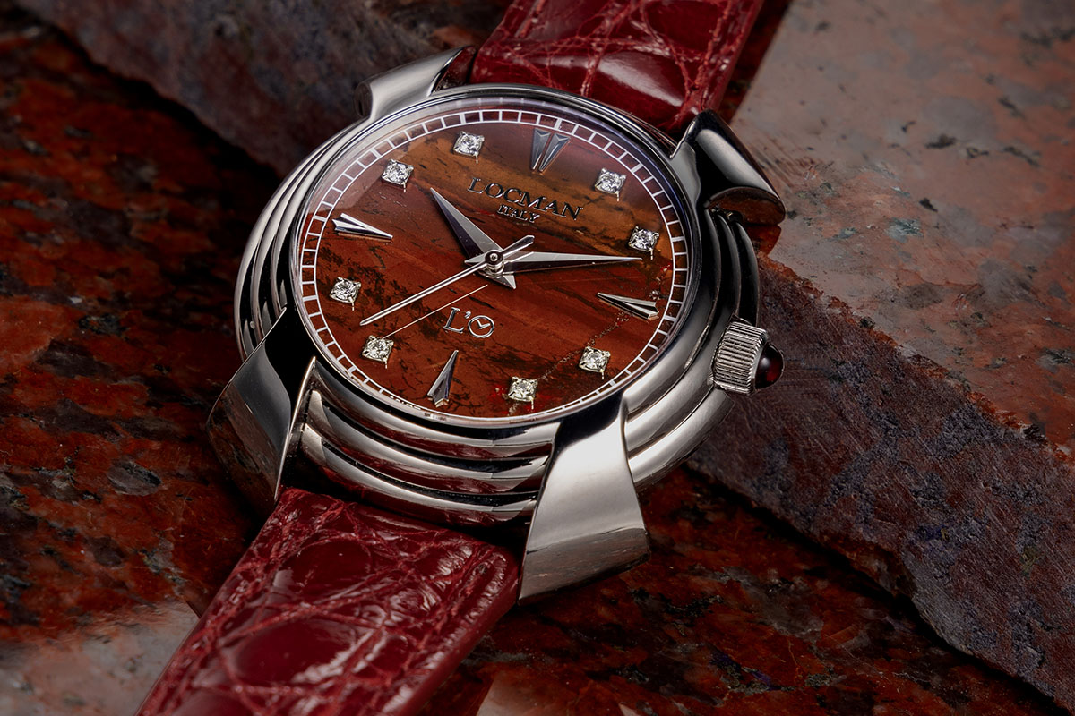 E vediamola allora Locman Decimo Canto. Parto da quello che maggiormente mi ha impressionato quando ho avuto il privilegio di vederla in anteprima e un po’ “aumm aumm” a Vicenza Oro, lo scorso settembre: i quadranti. Per i quali il brand ha scelto il sorprendente effetto delle pietre dure: lapislazzuli, malachite, occhio di tigre, diaspro rosso e turchese, affiancate dalla madreperla.