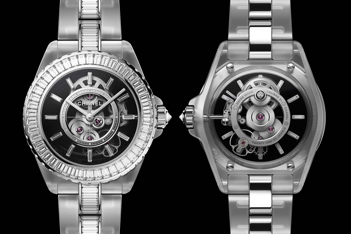 Evoluzione del precedente J12 X-Ray, questo inedito Chanel X-Ray si distingue prima di tutto per l’effetto “frozen”. Una particolare finitura “ghiacciata” che riproduce alla perfezione un vetro congelato e dà l’impressione di una gelida opacità. Una sensazione raggiunta con la messa a punto di un ulteriore step nella lavorazione del vetro zaffiro: terminata la fase di lucidatura, ogni singolo componente della cassa e del bracciale è smerigliato con un disco diamantato così da satinare la superficie.