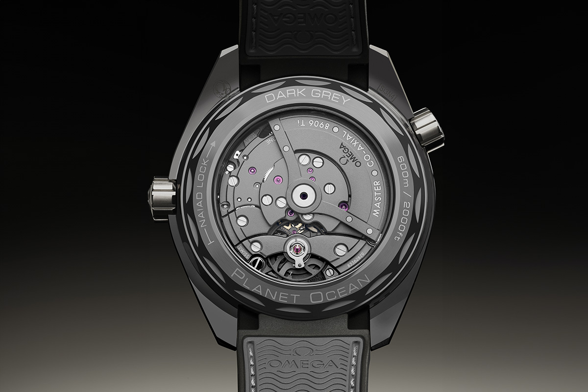 Già, perché il titanio grado 5 ritorna anche nel movimento che anima il Planet Ocean Dark Grey: nella platina e nei ponti del calibro Co-Axial Master Chronometer 8906 Ti, chiaramente concepito e fabbricato “in casa”. Se va ricordato che il titanio grado 5 è un materiale estremamente difficile da gestire – s’incendia facilmente, deve essere lavorato in camere pressurizzate con gas inerte e ha quindi alti costi di lavorazione –, di contro va anche detto che ponti e platina in titanio grado 5 conferiscono peculiari doti di rigidità e robustezza al movimento stesso.