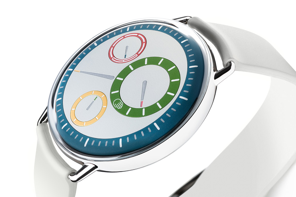 Quando è uscito, nel 2010, Ressence ha fatto scalpore. Mai s’era visto un orologio simile: con quella affissione a dischi rotanti, immersa in un bagno d’olio per eliminare la rifrazione del vetro, era qualcosa di assolutamente innovativo. Da allora, il Marchio fondato e concepito da Benoît Mintiens ha arricchito il catalogo di diversi modelli (anche senza olio), tutti progettati in Belgio, ad Anversa, e costruiti in Svizzera, a Fleurier. E tutti con un’estetica monocromatica, dalle tonalità sobrie. Finora. Oggi Ressance presenta il nuovo Type 1° M (M come Multicolour): una versione creativa, dichiaratamente ispirata alle arti grafiche e a un uso ludico del colore.