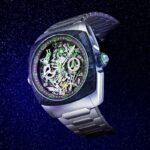 Cassa (48 mm) in acciaio 316L annerito, impermeabile fino a 5 atm. Due movimenti meccanici a carica automatica, sovrapposti, calibro Seiko NH35 come base e Seiko NH05 come top, con eventuale secondo fuso orario e datario. Doppio quadrante, cupola in Gorilla Glass, cinturino in Fkm (polimero anallergico). Edizione limitata di 100 esemplari, 1699,43 euro.