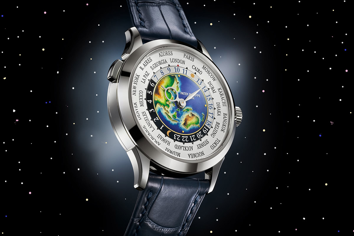 Cassa (38,5 mm) in oro bianco. Movimento meccanico a carica automatica, calibro 240 HU di manifattura, con micro-rotore decentrato, ore universali, funzione giorno/notte per i 24 fusi orari di riferimento. Quadrante in smalto cloisonné Grand Feu, vetro zaffiro (anche sul fondello), cinturino in pelle di alligatore. 92.900 euro.