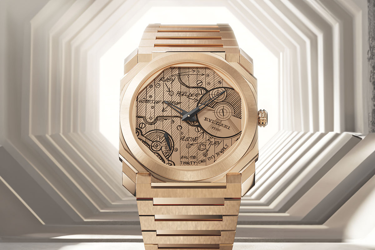 Super-anteprima di Watches and Wonders, un inedito trompe-l’œil presentato dalla Maison romana. Che, non paga di aver declinato la collezione in innumerevoli varianti, anche col quadrante “disegnato”, ora la interpreta in modo del tutto originale. Con il bozzetto del calibro ultrapiatto Bvl 138, realizzato dalla penna di Fabrizio Buonamassa Stigliani, riprodotto sul quadrante laccato – quasi un avatar di ciò che appare sul fondello. Tre le referenze, in tiratura limitata: 70 esemplari in oro rosa, 280 esemplari in acciaio e 140 della versione Cronografo GMT (in cui però il calibro è il Bvl 318). Da 17.800 euro.