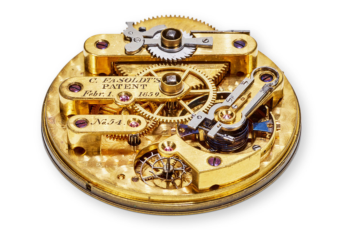 Oltre che abilissimo costruttore, Fasoldt era un creativo: a lui si devono diversi brevetti in ambito meccanico, anche se tra tutti quello di maggior interesse storico per noi è il numero 22791, depositato nel 1859, con il sobrio titolo di Cronometro (Chronometer, nell’originale). A questo, fece seguito nel 1865 il brevetto #46652, che altro non era se non una versione migliorata dell’invenzione precedente.