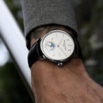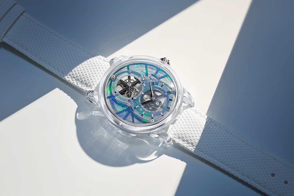 La collezione, nata nel 2022, si distingue per il quadrante “increspato”, che ora acquista un nuovo colore: bianco argenté. Grazie al quale l’intero esemplare – realizzato in acciaio – assume un aspetto algido, particolarmente luminoso. Quanto al resto, mantiene le consuete particolarità: la cassa (40,4 mm) chiamata La City, d’impronta no-gender, e il movimento automatico, calibro SMA03-TD di manifattura, con i caratteristici piccoli secondi a ore 1.30. Per la cronaca: si tratta di una novità di Watches and Wonders, presentata in anteprima. E sarà in vendita dal 9 aprile. 23.900 euro (tasse escluse).