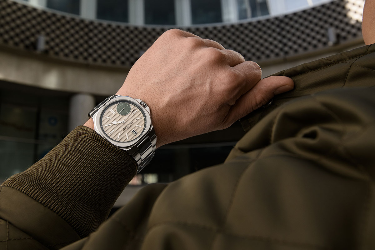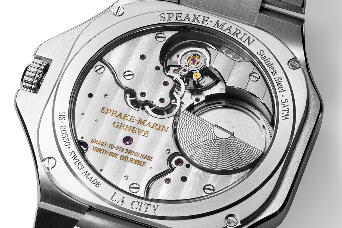 Qualche parola, infine, sul movimento. Si tratta del medesimo calibro di manifattura, l’SMA03-TD, che anima le altre due referenze con data della collezione, gli Speake Marin Date e Infinity Date. Un movimento per nulla banale, perché realizzato completamente in-house da Le Cercle des Horlogers, il laboratorio svizzero di proprietà situato a La Chaux-de-Fonds. E non è banale in quanto la posizione del contatore dei piccoli secondi ne ha comportato una re-ingegnerizzazione completa. In una configurazione classica, infatti, il treno del tempo avrebbe interferito con il modulo destinato alla regolazione dell’ora.