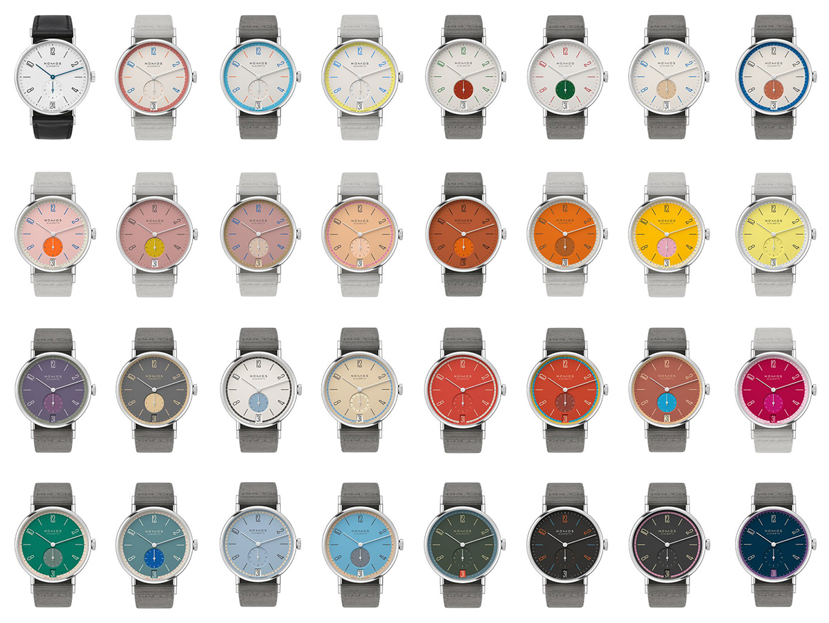 Proprio da qui, ci scommetto, è nata la sorpresa del Tangente 38 visto a Ginevra. Che è un orologio ormai da anni in collezione corrente ma che per il Salone è stato vestito da Nomos Glashütte con 31 combinazioni di colore. Il risultato è una collezione di 31 diverse versioni del Tangente, ciascuna limitata a 175 pezzi, in onore degli oltre 175 anni di tradizione orologiera della valle di Glashütte.