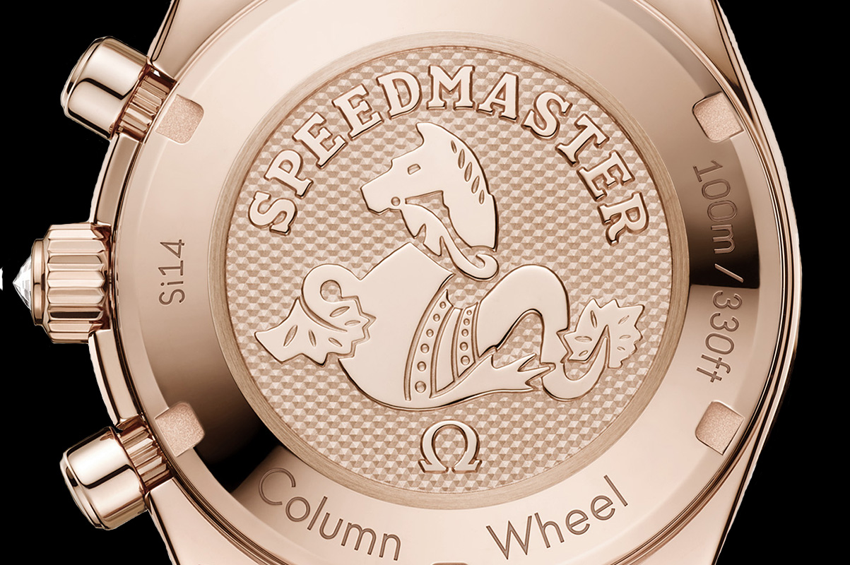La presenza del bracciale o del cinturino chiaramente influisce sui prezzi, che vanno da 19.500 a 51.900 euro. Nelle didascalie in alto riportiamo le indicazioni più precise per alcuni esemplari, ma per avere il quadro complessivo è opportuno consultare l’e-commerce ufficiale, che riporta l’intera collezione. Riguardo al movimento, infine, nulla cambia rispetto ai precedenti di qualche anno fa. Oggi come ieri gli Speedmaster 38 montano il calibro Co-Axial 3330, ovviamente di manifattura. A carica automatica, è fornito di scappamento Co-Axial e spirale in silicio, e di ruota a colonne per la gestione delle funzioni crono. Ed è dotato anche di certificato ufficiale di cronometro rilasciato dal Cosc. Oggi come ieri, però, il movimento è nascosto dietro il fondello pieno, decorato con l’effigie dell’Ippocampo. Ovvero il logo storico della collezione, condiviso con la famiglia di Seamaster. Ma anche questa è un’altra storia…