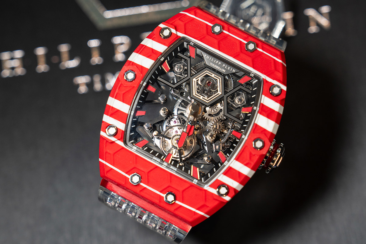 Detto, fatto. Come avevamo anticipato, l’avventura di Philippe Plein Timemachines ha avuto un seguito. E che seguito! Durante la Geneva Watch Week, il mese scorso, la collezione alto di gamma del designer tedesco ha conosciuto alcune inedite declinazioni, presentate in un apposito pop-up store sulle rive del Lemano. Al top, senza dubbio, il Crypto King Flying Tourbillon, rigorosamente in tiratura limitata. Già mi sembra di sentire mugugni e borbottii da parte dei soliti tromboni: «Tourbillon volante… un marchio di moda…». Ebbene sì, fatevene una ragione: il mondo si evolve, l’orologeria pure. E i fashion brand hanno tutto il diritto di fare un salto di qualità per offrire al proprio pubblico di aficionados una gamma sempre più ampia di prodotti.