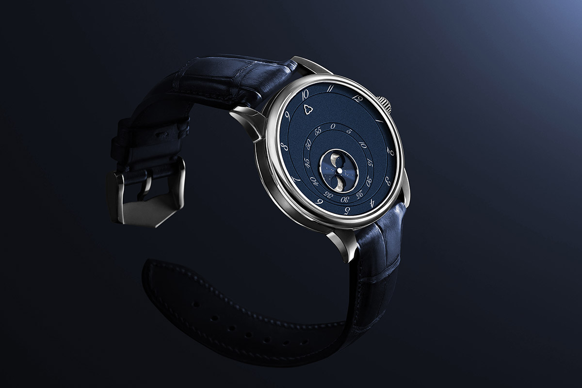 La collezione Les Matinaux risale al 2018 e prende nome dalla raccolta di poesie di René Char del 1950. Appena presentata, si capiva subito di che pasta era fatta, grazie a un’indicazione del tempo senza lancette per ore, minuti e secondi. Al contrario, gli orologi utilizzavano una visualizzazione “vagabonda”, con tre dischi rotanti combinati a tre puntatori fissi per indicare l’ora.