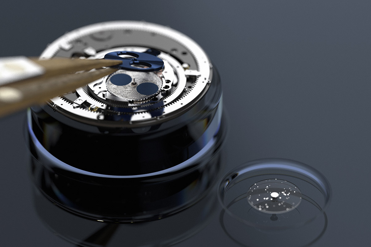 Il meccanismo funziona attraverso una ruota dentata con 59 ingranaggi, che evoca l’orbita della Luna intorno alla Terra, completando un ciclo di 29,5 giorni. Gli orologiai di Trilobe, però, non si sono accontentati di introdurre una complicazione piuttosto comune. Per la prima volta, infatti, le fasi lunari sono state collegate in modo coassiale alla ruota dei secondi, sotto un cielo stellato dinamico e ipnotico.