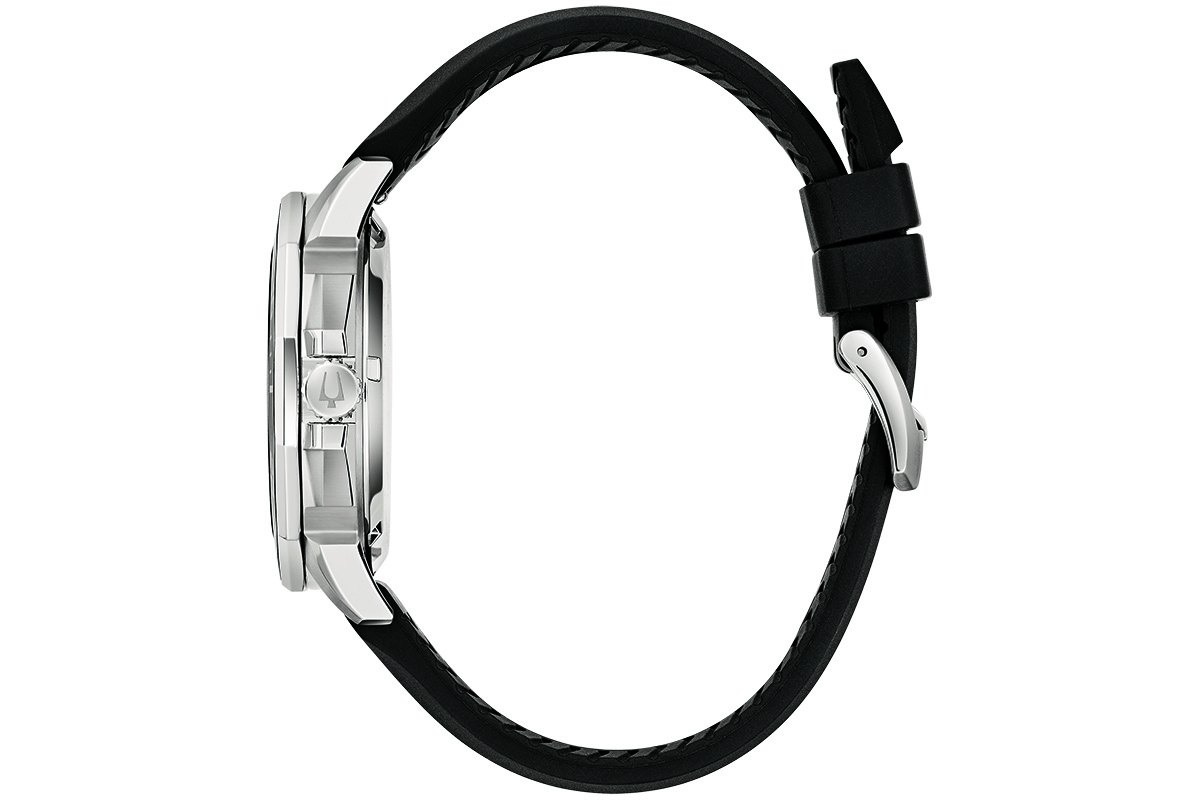 La lettura dell’ora è facile, grazie alle lancette a daga e agli indici oversize applicati; questi ultimi sono a bastone, tranne quello delle 12 che è il classico diapason, logo di Bulova. Il rivestimento luminescente fa egregiamente la sua parte aiutando nella lettura, così come la punta rossa della lancetta dei secondi. Un po’ sbilanciate la distribuzione delle scritte: brand, nome della collezione e impermeabilità a ore 12, mentre a ore 6 c’è solo il valore della frequenza e il simbolo dell’infinito, a indicare il calibro Precisionist.